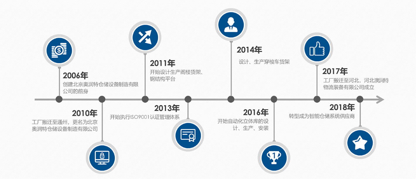 河北澳润特物流装备有限公司成立于2006年,是国内专业从事自动化立体仓库工程的规划、设计、制造、集成、安装、调试的大规模厂家之一。澳润特工厂位于廊坊市永清县永达产业园,占地面积约25000平方米,拥有各类中高端的机械生产设备,包括各种型材的高精辊轧设备、连续精密数控冲切、焊接机组、全自动静电粉末喷塑生产线等自动化设备的产品的整套生产体系。