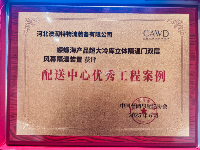 澳润特凭借在中国仓储配送行业中的杰出实力与卓越发展力,荣获了“2025年配送中心优秀工程案例”奖项。澳润特感谢“中国仓储与配送协会”、行业内各单位和社会各界人士对企业的肯定和支持。相信在大家的监督和鼓励下,澳润特一定会再接再厉越来越好。