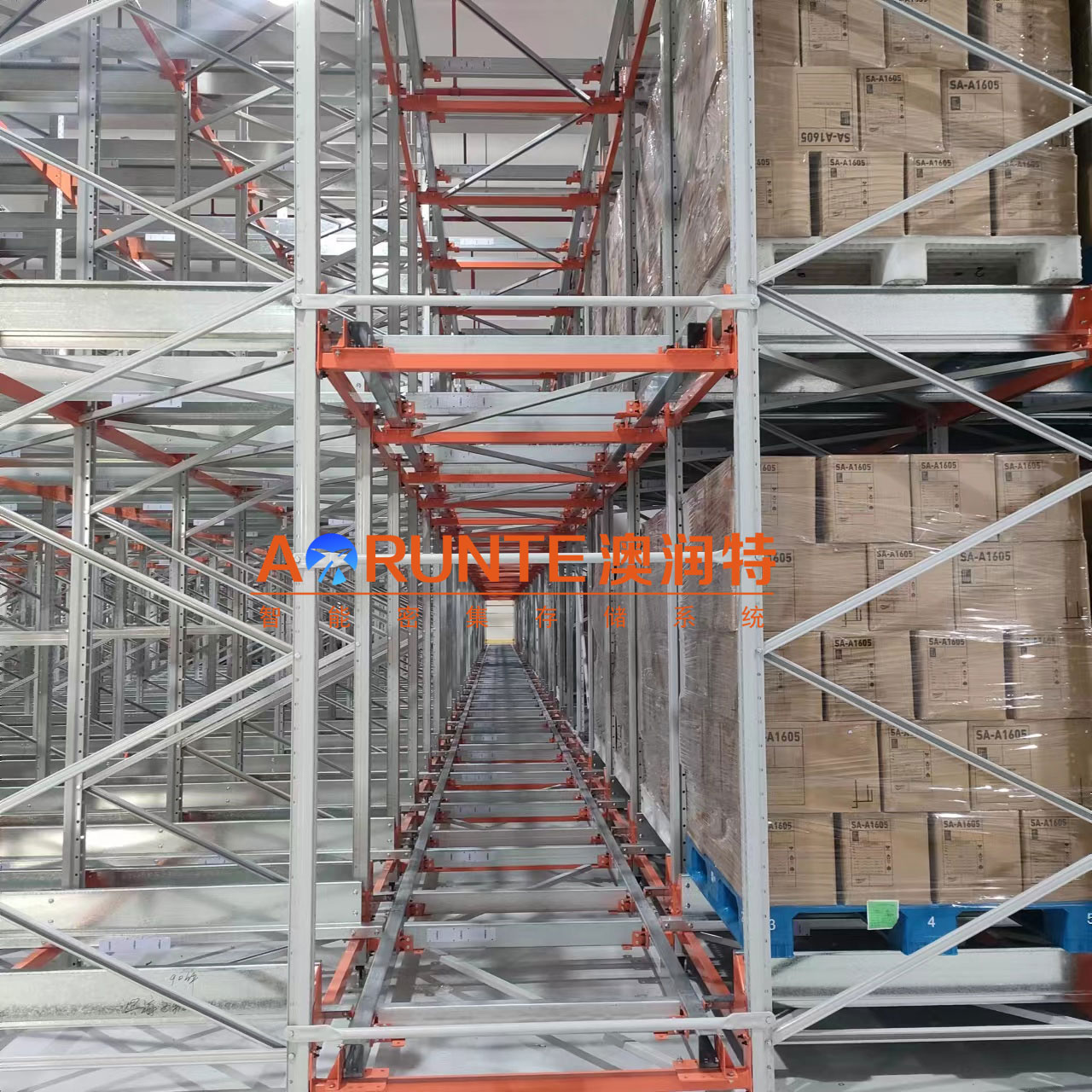 澳润特四向穿梭车库解决方案是可在交叉轨道上沿纵向或横向轨道方向行驶,到达仓库任意一个指定货位的存储系统,根据货物品规实现密集库单深位、多深位组合存储,WCS调度智能四向车、齿轮齿条提升机作业,实时监控车辆坐标位置、速度、电量等状态。完全实现智能存储无人化作业。